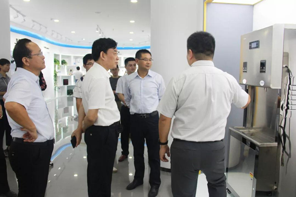 縣長黃韡一行先后參觀了榮事達智慧水世界展廳、六大科研實驗室、物聯網產品體驗中心、智能化生產車間等,詳細了解企業發展狀況、研發實力、安全生產和新品開發等情況,現場體驗了榮事達全系列凈水產品及智慧管理系統等諸多創新技術,對榮事達校園直飲水、智能家居凈水、城市公共飲水、社區智慧飲水、農村污水處理、工業污水處理、生活污水處理、醫療用水處理、海水淡化、景觀水處理十大水處理系統戰略布局表現出極大興趣,高度贊揚了榮事達全方位構筑的智慧水世界宏偉藍圖。