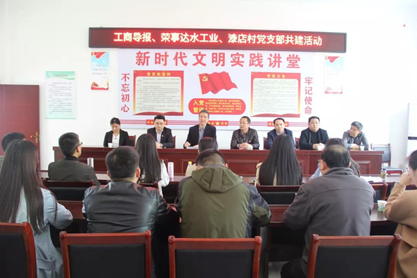 隨后,榮事達水工業(yè)集團同工商導報社就支部建設情況交流心得體會。榮事達水工業(yè)集團黨支部書記劉漢民講道,此次漆店村扶貧活動,對榮事達水工業(yè)集團和工商導報社是一次很有意義的共建嘗試,通過彼此合作,實現(xiàn)雙向互動、資源共享、優(yōu)勢互補,取得了1+1>2的效果。希望今后雙方可以多開展支部共建活動,在相互學習了解中,讓黨建工作更上一個臺階。