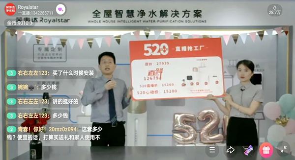 直播中,榮事達(dá)主播團(tuán)隊(duì)向觀眾們分享了榮事達(dá)RO冷熱一體機(jī)以及全屋凈水系列產(chǎn)品,并對產(chǎn)品性能品質(zhì)進(jìn)行了深度講解。此次直播活動的重磅套餐——榮事達(dá)全屋智慧凈水系統(tǒng),基于個(gè)性化家庭定制場景,涵括了前置過濾器、中央軟水機(jī)、反滲透凈水機(jī)、速熱飲水機(jī)、凈飲一體機(jī)等系列產(chǎn)品,完美實(shí)現(xiàn)用戶家庭直飲、洗滌、洗浴、燒飯、洗菜、衛(wèi)生等全屋凈水覆蓋,有效杜絕各類有害物質(zhì)侵襲,全方位呵護(hù)家庭飲用水健康。榮事達(dá)高品質(zhì)、高顏值的明星產(chǎn)品一經(jīng)推出,吸引了直播間觀眾紛紛留言詢價(jià)。直播間超低折扣、精品爆款限量秒殺、預(yù)訂讓利以及好禮免費(fèi)送等福利更是讓參與活動的消費(fèi)者熱情高漲,對榮事達(dá)的“良心讓價(jià)”好評如潮。