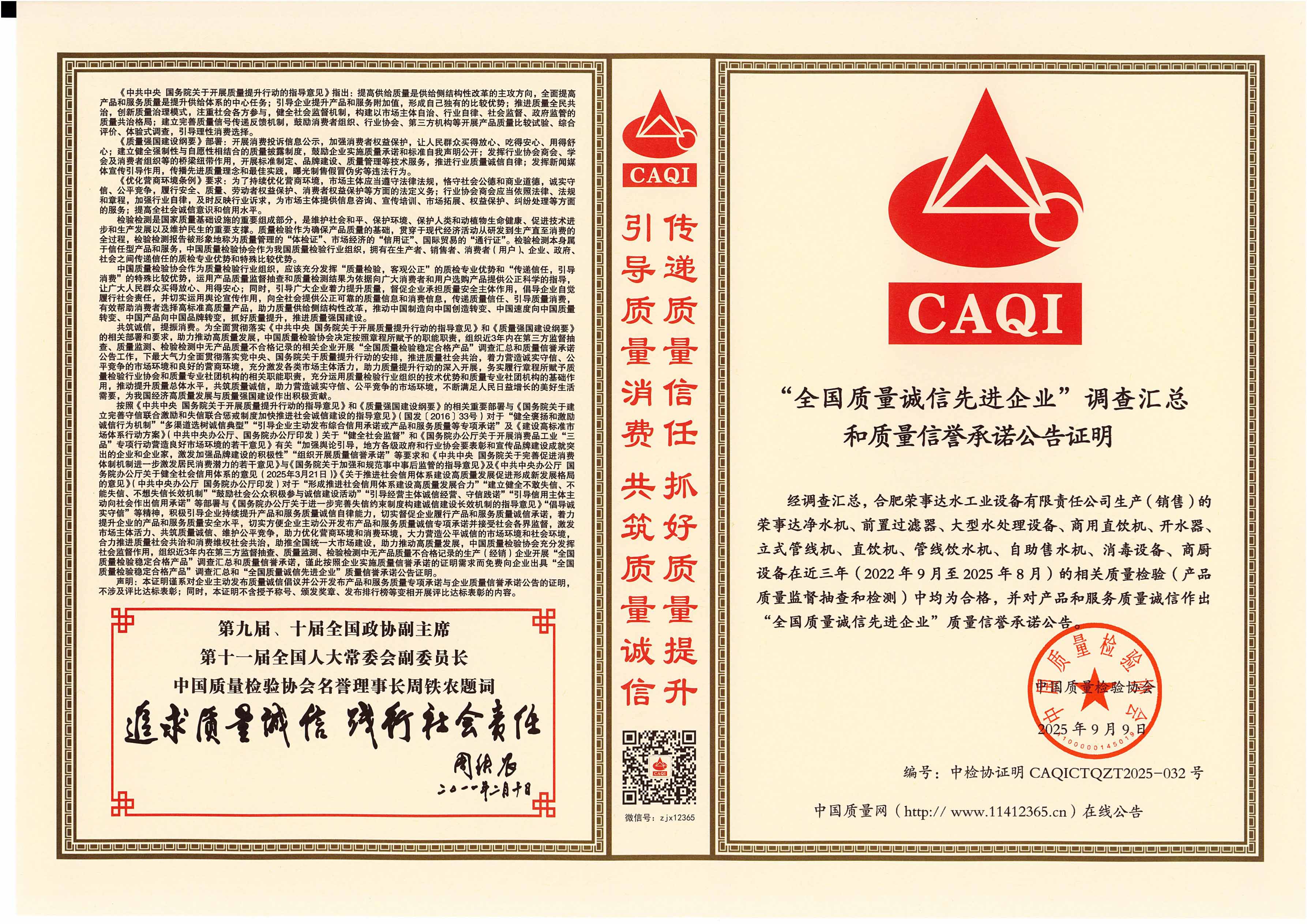 全國(guó)質(zhì)量誠(chéng)信先進(jìn)企業(yè) -