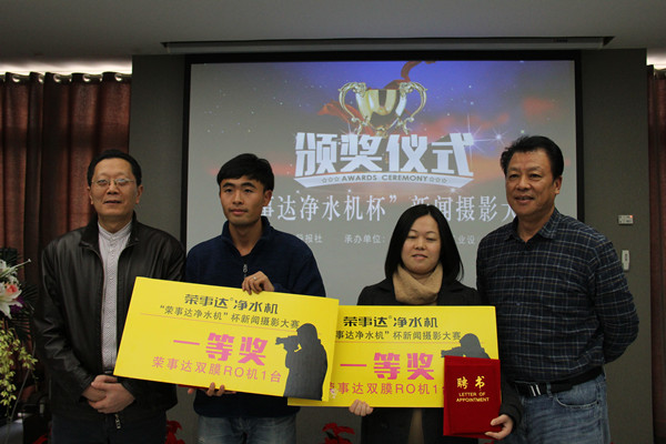 “榮事達凈水機杯”攝影大賽由工商導報社主辦,合肥榮事達水工業設備有限公司冠名。參賽作品要求能夠全面展示安徽經濟社會發展、特別是民營經濟和民營企業發展的可喜成果,能夠充分展示當地發展風貌的各類節慶活動以及記錄各級工商聯或商會組織的重大活動。五月份大賽活動啟動以來,組委會共收到參賽作品近二百幅,經嚴格評選,最后頒發一等獎2名、二等獎3名、三等獎5名,優秀獎10名,黃山廣播電視臺施廣德、工商導報記者李誠、安徽日報攝影師姚林等獲獎。李俊波、王六一、雷鳴等為獲獎代表頌發了獲獎榮譽證書和工商導報社簽約攝影師聘書,聘書有效期一年。