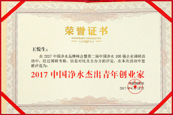 • 熱烈祝賀榮事達水工業公司總經理王悅生獲評“2017年中國凈水杰出青年創業家”