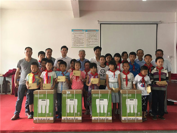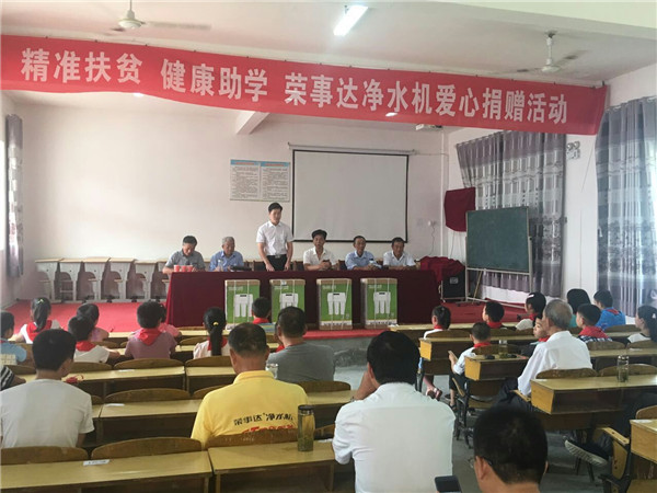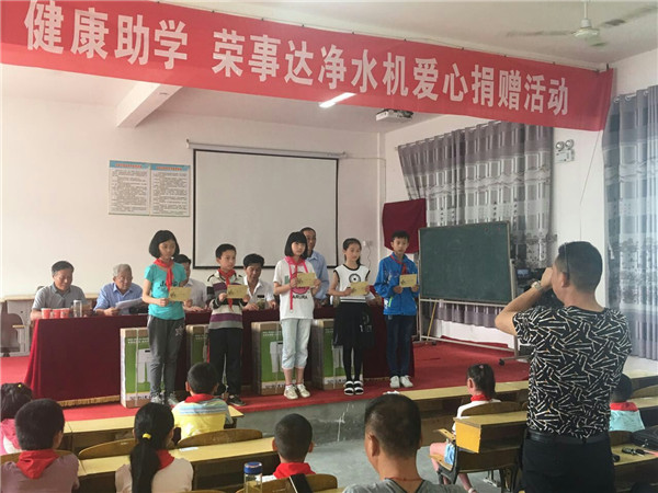•        6月2日,“精準扶貧 健康助學  榮事達凈水機愛心捐贈活動”于安徽望江縣順利開展。榮事達水工業公司聯合當地經銷商為望江縣毛安中心學校、新壩中心學校、武昌小學等多所學校多所學校捐贈凈水設備,并向20名特困學生捐贈了助學款,以改善學生們的飲水及生活條件。