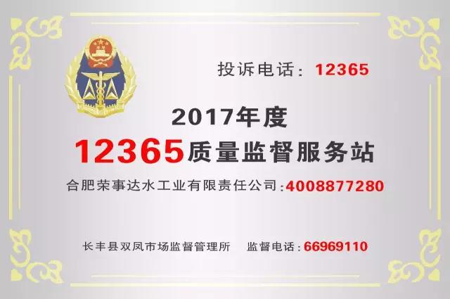 • 榮事達水工業公司獲“12315消費者維權服務站”及“12365質量監督服務站”兩項殊榮