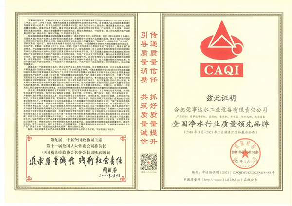 • 誠信315|熱烈祝賀榮事達榮獲“全國產(chǎn)品和服務(wù)質(zhì)量誠信示范企業(yè)”“全國質(zhì)量信得過產(chǎn)品”“全國凈水行業(yè)質(zhì)量領(lǐng)先品牌”等多項榮譽