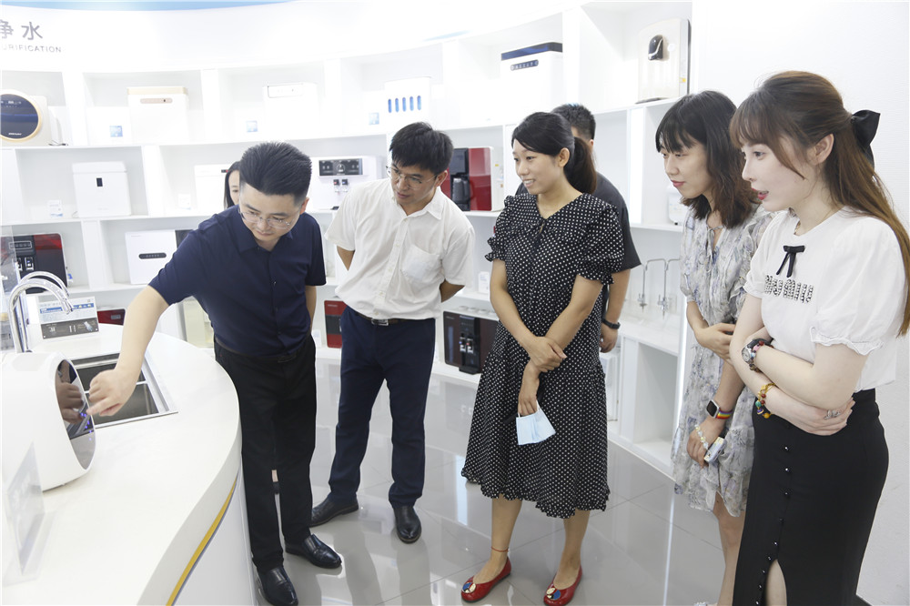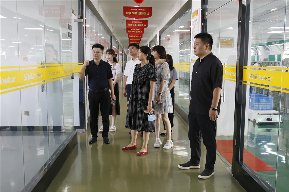 一行領導先后參觀了榮事達智能化生產車間和智慧水世界展廳,了解榮事達企業綜合實力及十大水處理產業具體發展狀況,現場體驗了企業最新研發定制產品與自主開發的物聯網校園智慧管理系統,并為榮事達行業領先的技術實力點贊。