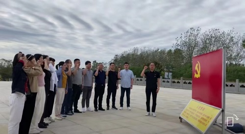 面對(duì)鮮紅的黨旗,目光堅(jiān)定,緊握右拳,鏗鏘有力地對(duì)黨旗莊嚴(yán)宣誓。錚錚誓言,激勵(lì)廣大黨員充分發(fā)揮先鋒模范作用,在以后公司建設(shè)發(fā)展中更好地發(fā)揮帶頭作用。