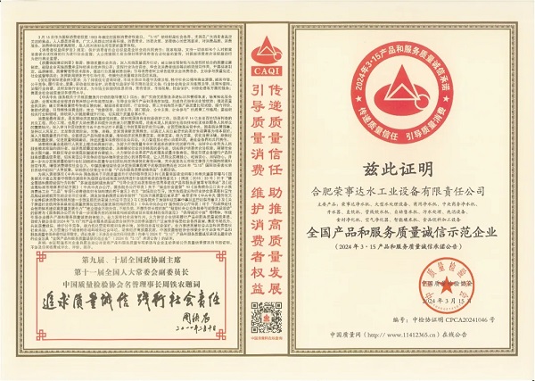 傳遞質(zhì)量信任,引導(dǎo)質(zhì)量消費。 在由中國質(zhì)量檢驗協(xié)會主辦的2024年“3·15”產(chǎn)品和服務(wù)質(zhì)量誠信承諾的主題活動中,榮事達(dá)水工業(yè)公司憑借卓越的產(chǎn)品品質(zhì)及良好的社會形象,獲得協(xié)會以及權(quán)威專家的一致認(rèn)可,榮膺 “全國產(chǎn)品和服務(wù)質(zhì)量誠信示范企業(yè) ”“全國凈水行業(yè)質(zhì)量領(lǐng)先企業(yè)”“全國凈水行業(yè)質(zhì)量領(lǐng)先品牌”“全國產(chǎn)品和服務(wù)質(zhì)量誠信品牌”“全國質(zhì)量檢驗穩(wěn)定合格產(chǎn)品”“全國質(zhì)量檢驗信譽(yù)保障產(chǎn)品”“全國消費者質(zhì)量信譽(yù)保障產(chǎn)品 ”多項榮譽(yù)。
