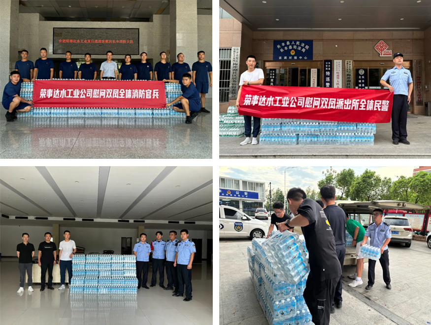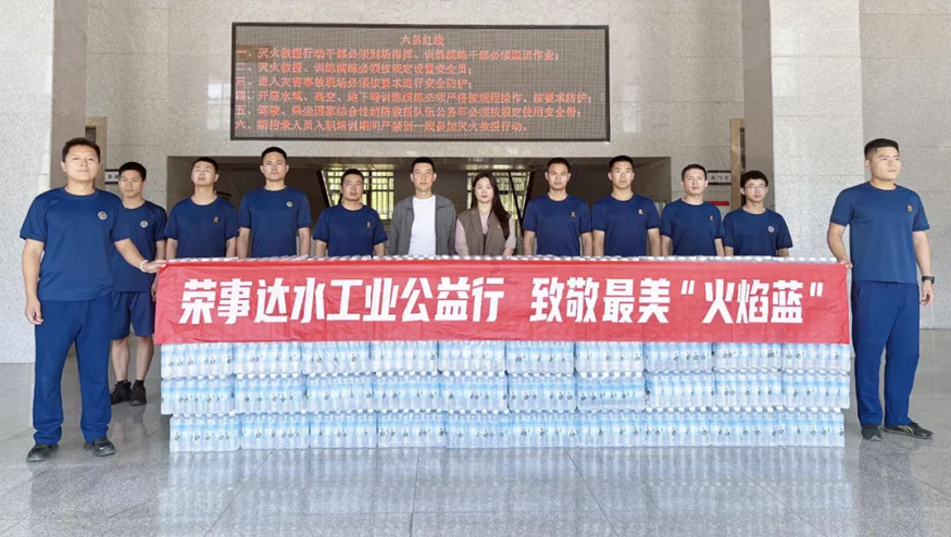 5月12日,榮事達(dá)水工業(yè)開展公益行動(dòng),集團(tuán)行政總監(jiān)雷鵬、黨支部書記肖曉曉來到雙鳳經(jīng)開區(qū)徐橋苑消防執(zhí)勤點(diǎn)、長豐縣消防救援大隊(duì)捐贈(zèng)飲用水,致敬最美“火焰藍(lán)”,以實(shí)際行動(dòng)傳遞企業(yè)的溫暖與擔(dān)當(dāng)。