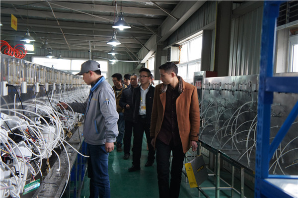 在產品展廳,華中大區總監劉明明為參觀人員介紹了公司產品種類、功能,并分析了凈水行業的現狀和發展前景。之后,一行十余人參觀了園區,看到整齊停放的服務車,參觀者連連稱贊公司這一加盟政策給力,既方便了代理商跑市場,又是十分有效的宣傳方式。在生產車間,參觀者一邊認真聽取講解,一邊仔細觀看生產環節,零距離接觸生產線,親身感受操作流程。